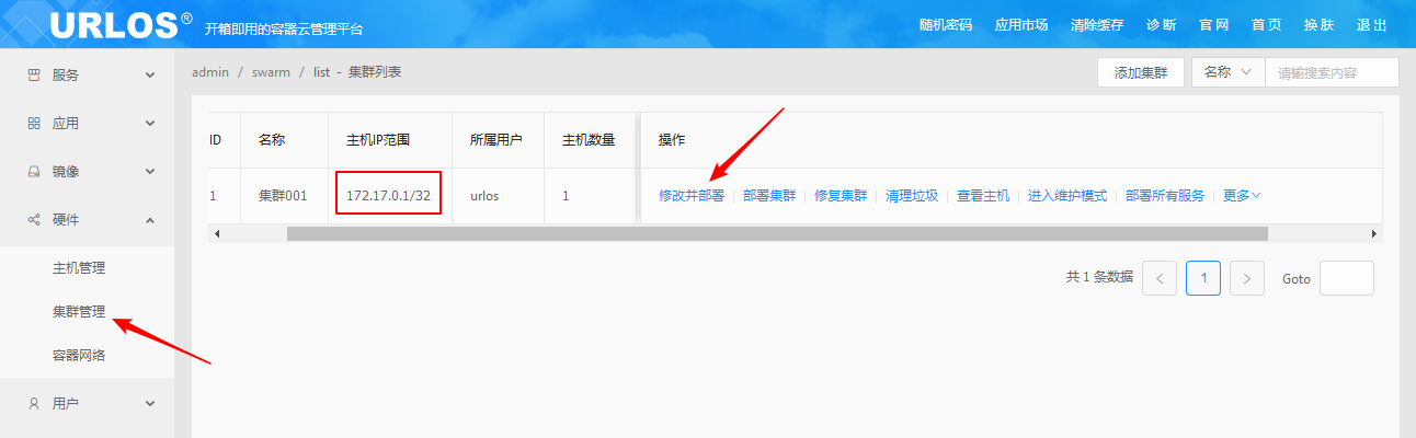 以单机模式安装的URLOS,集群IP范围默认是172.17.0.1/32,在此IP范围内仅有1个IP地址,因此,我们应该首先修改这个集群IP范围。